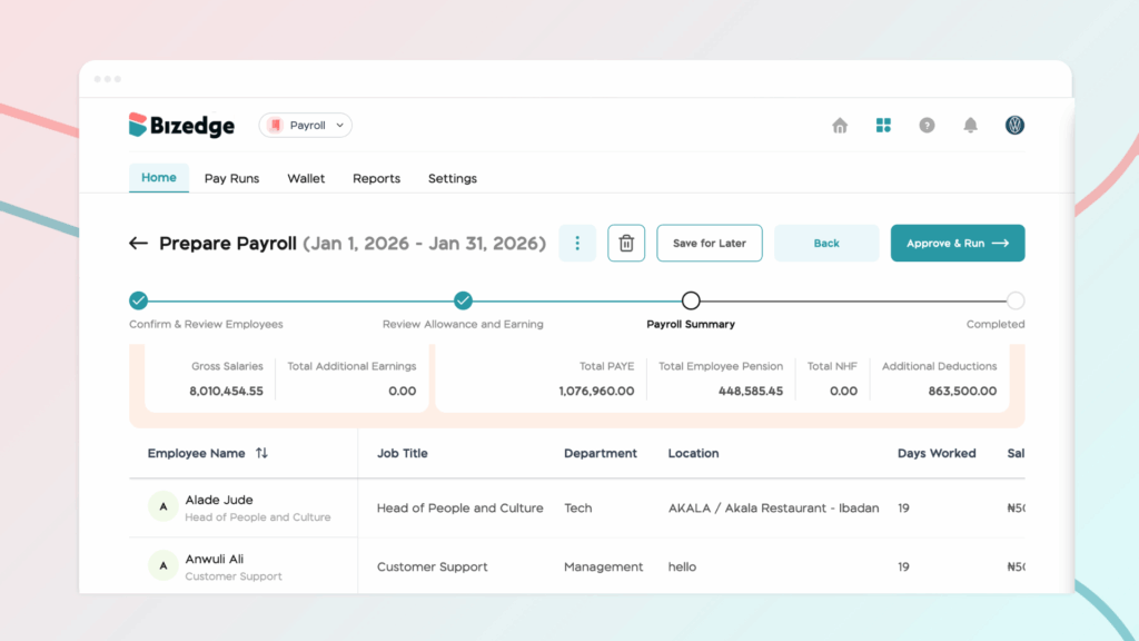 - Statutory Deductions – Configure mandatory deductions such as Pension, PAYE, and NHF for all or selected employees