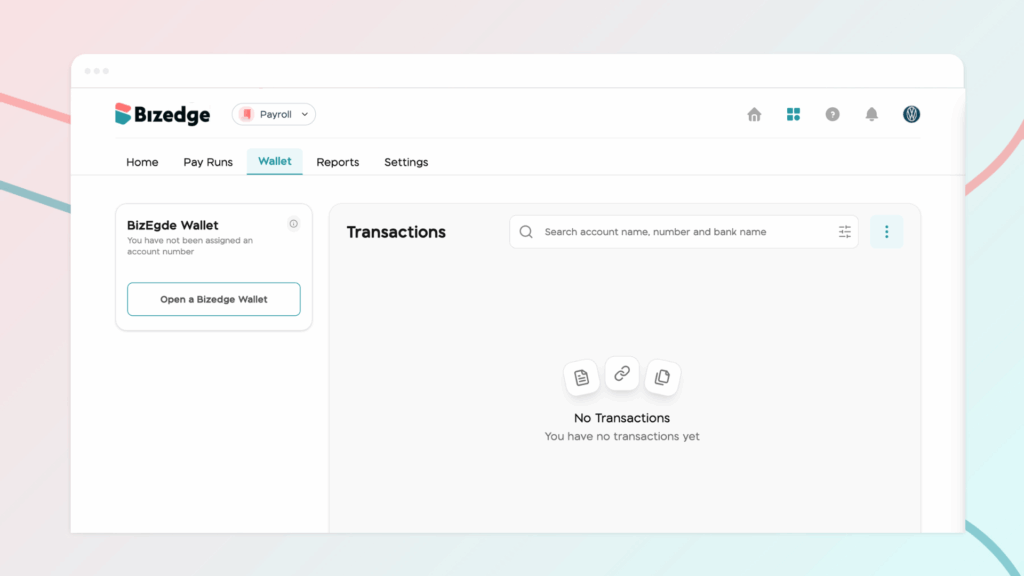 The BizEdge Wallet section gives you a clear view of your company’s payroll funds and transactions.